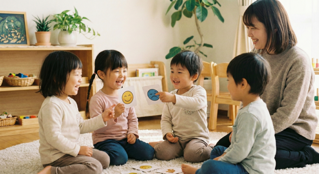 「気持ちが伝えにくい」というテーマであれば、感情を言葉や表情カードで表現する活動を行います。グループの中で「今どんな気持ち?」と伝え合うことで、相手の感情を理解する力も自然と育まれていきます。