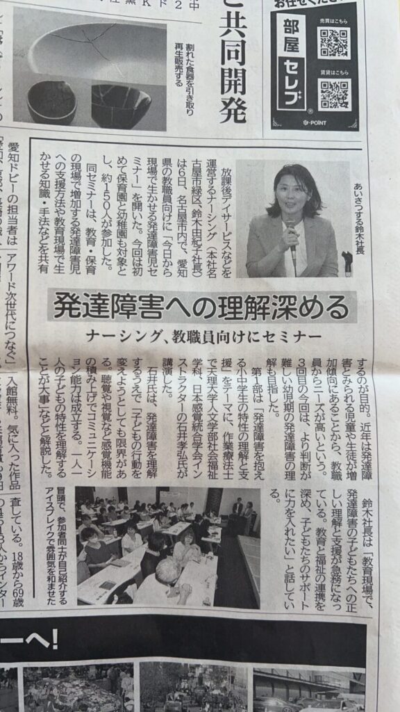 名古屋市教育委員会・愛知県教育委員会より後援をいただき、2025年8月6日、ウインクあいちにて【教育・保育現場における発達障がい児への支援方法】セミナーを、株式会社ナーシング・株式会社ナーシングプラス(本社名古屋市、代表取締役 鈴木由紀子)が共同開催いたしました。